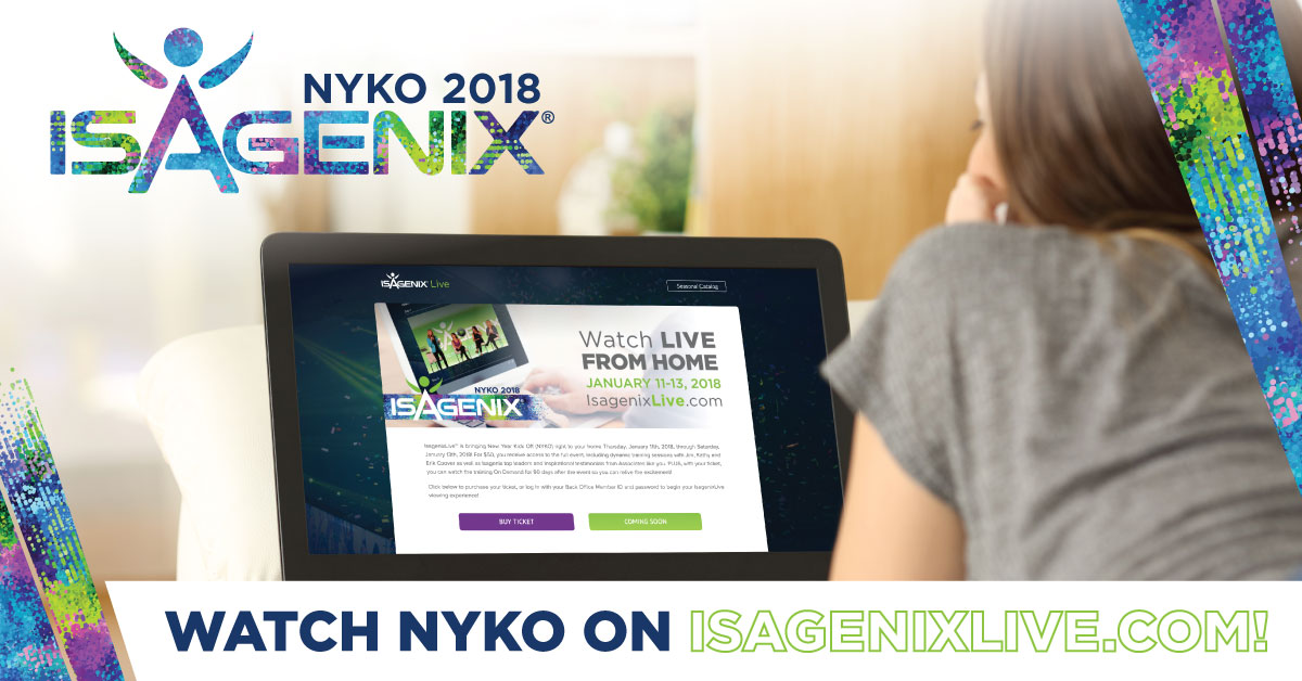 Bring the IsagenixLive experience to your home and watch NYKO 2018 with your friends, family, or team members to receive invaluable leadership development tools, business-building insights, and a renewed belief in Isagenix.