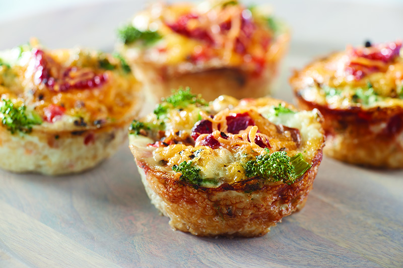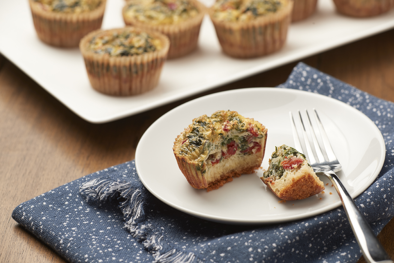 Whey Better Fritatas Cups 109 Calories, 40 Minutes Olive Oil Spray 4 (.9oz) White Cheddar Whey Thins™, finely crushed 7 large egg whites 6 large Eggs 1/2 tsp Salt 1 tsp Ground Black Pepper 3/4 cup Cooked Spinach, chopped 2/3 cup Roasted Red Peppers, chopped 2/3 cup Shallots, thinly sliced 1 tbsp +1 tsp… Continue reading Whey Better Frittatas