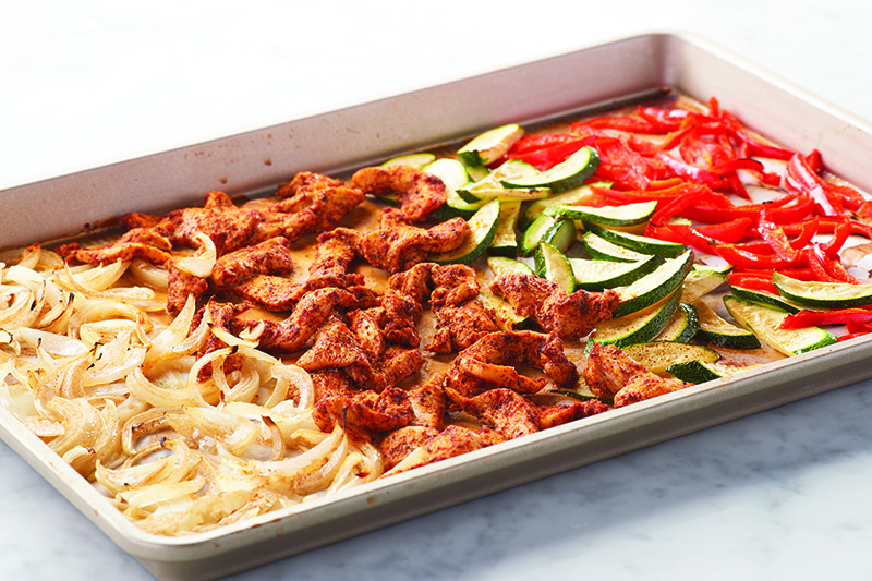 One-Pan Chicken Fajitas NUTRITIONALS PER SERVING: 496 Calories; 12g Fat; 43g Carbs; 5g Fiber; 5g Sugar; 51g Protein Olive Oil Spray 2 (6-ounce) boneless, skinless chicken breasts, cut into 1/4-inch strips 1 tbsp lime juice 1 tsp olive oil 1 tsp ground cumin 1 tsp chili powder 1/2 tsp Garlic Powder 1/4 tsp each… Continue reading One-Pan Chicken Fajitas