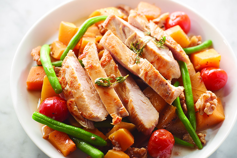 Hearty Chicken and Butternut Squash NUTRITIONALS PER SERVING: 520 Calories; 28g Fat; 28g Carbs; 6g Fiber; 7g Sugar; 48g Protein 1 tbsp olive oil 2 (6-ounce) boneless, skinless chicken breasts, cut into 1-inch pieces 2 cups peeled and (1/4-inch) cubed butternut squash 2/3 cup low-sodium chicken broth 1/2 cup fresh green beans, trimmed 1/2… Continue reading Hearty Chicken and Butternut Squash