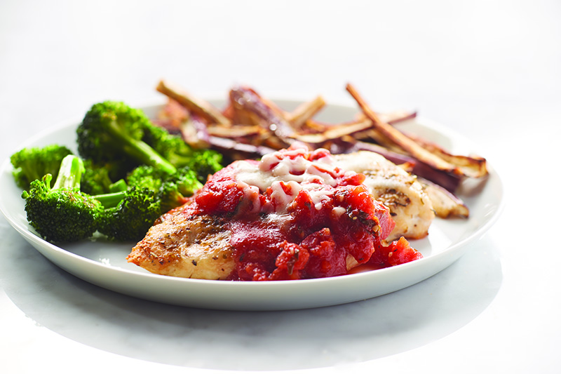 Light Chicken Parm Dinner NUTRITIONALS PER SERVING: 420 Calories; 16g Fat; 17g Carbs; 9g Fiber; 5g Sugar; 52g Protein 1/4 cup Classic Tomato Sauce 2 (6-ounce) boneless, skinless chicken breasts 1 tbsp plus 1 tsp olive oil, divided 2 tbsp grated Parmesan cheese 1/2 tsp Italian seasoning 3 cups eggplant, cut into 1/4 inch… Continue reading Light Chicken Parm Dinner