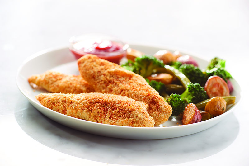 Whey Better Chicken Dinner Nutritionals Per Serving: 428 calories; 13g Fat; 29g carbs; 4g Fiber; 2g Sugar; 48g protein 2 packages White Cheddar Whey Thins™, finely crushed 1 large egg 2 tbsp water 6 (2-ounce) chicken tenderloins 1 1⁄2 tsp paprika 1 cup broccoli florets 1 cup baby potatoes, halved 1 cup cup fresh… Continue reading Whey Better Chicken Dinner
