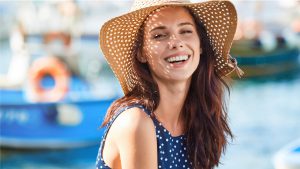 You can also invest in a cute, wide-brimmed hat to protect your face and neck if you’re going to be outdoors for long periods of time. Besides, big hats are making a comeback!