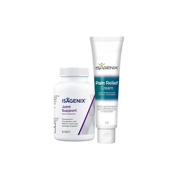 The Isagenix Joint Support™ tablets offer triple-action support to protect, rejuvenate, and soothe. Isagenix Pain Relief™ Cream offers quick pain relief.