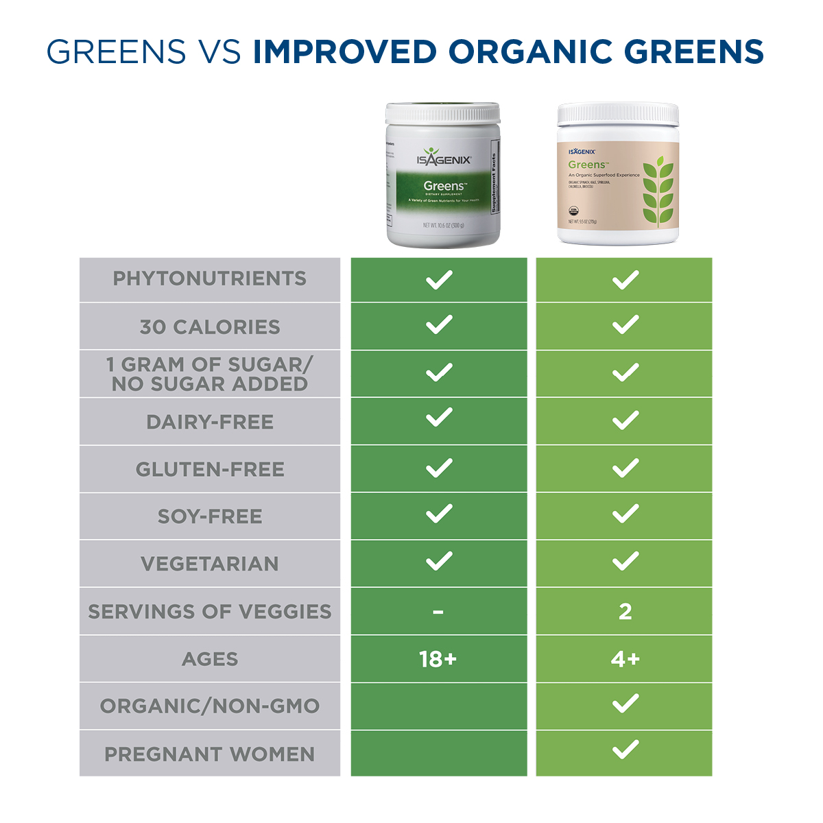 Isagenix Organic Greens is a delightful enhancement to the existing product line. The taste, texture, and collection of ingredients are superb! Thank you Isagenix for continuing to raise the bar on existing and new product in every one of your markets!