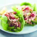 - Divide mixture evenly between the 2 large leaves of lettuce.