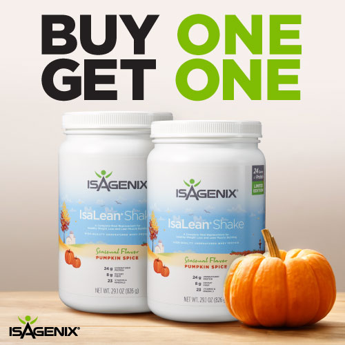 *Receive one free Pumpkin Spice IsaLean Shake canister when one or more Pumpkin Spice IsaLean Shake canister is purchased. Offer is automatically applied to qualifying orders placed from Nov. 28, 2017 (12 a.m. ET) to Dec. 3, 2017 (11:59 p.m. ET). To qualify, a Customer, Preferred Customer, or Associate in the United States, Canada, or Puerto Rico must place a wholesale product order; this promotion is not available for Autoship orders. Business Volume (BV) on free Pumpkin Spice IsaLean Shake Canister will not be applied to the Member or Enrolling Sponsor’s account.